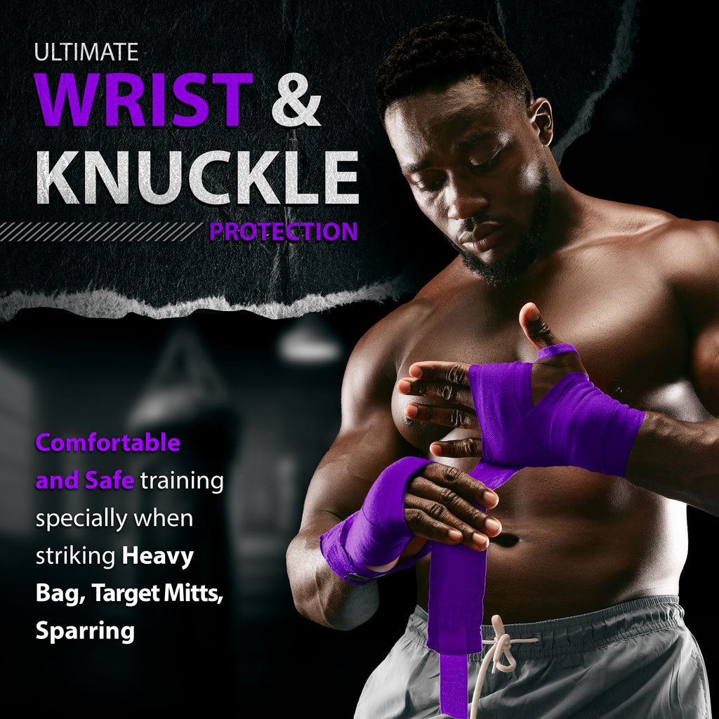 Don't let hand injuries hold you back from achieving your fighting potential. Invest in our boxing hand wraps and experience the benefits of a quality product. Our hand wraps will help you improve your punching technique, increase your punching power, and prevent injuries. designed for maximum wrist support, hand support & knuckle protection without adding excessive bulk under gloves.Order your pair today and take your training to the next level. Trust us, your hands and wrists will thank you.