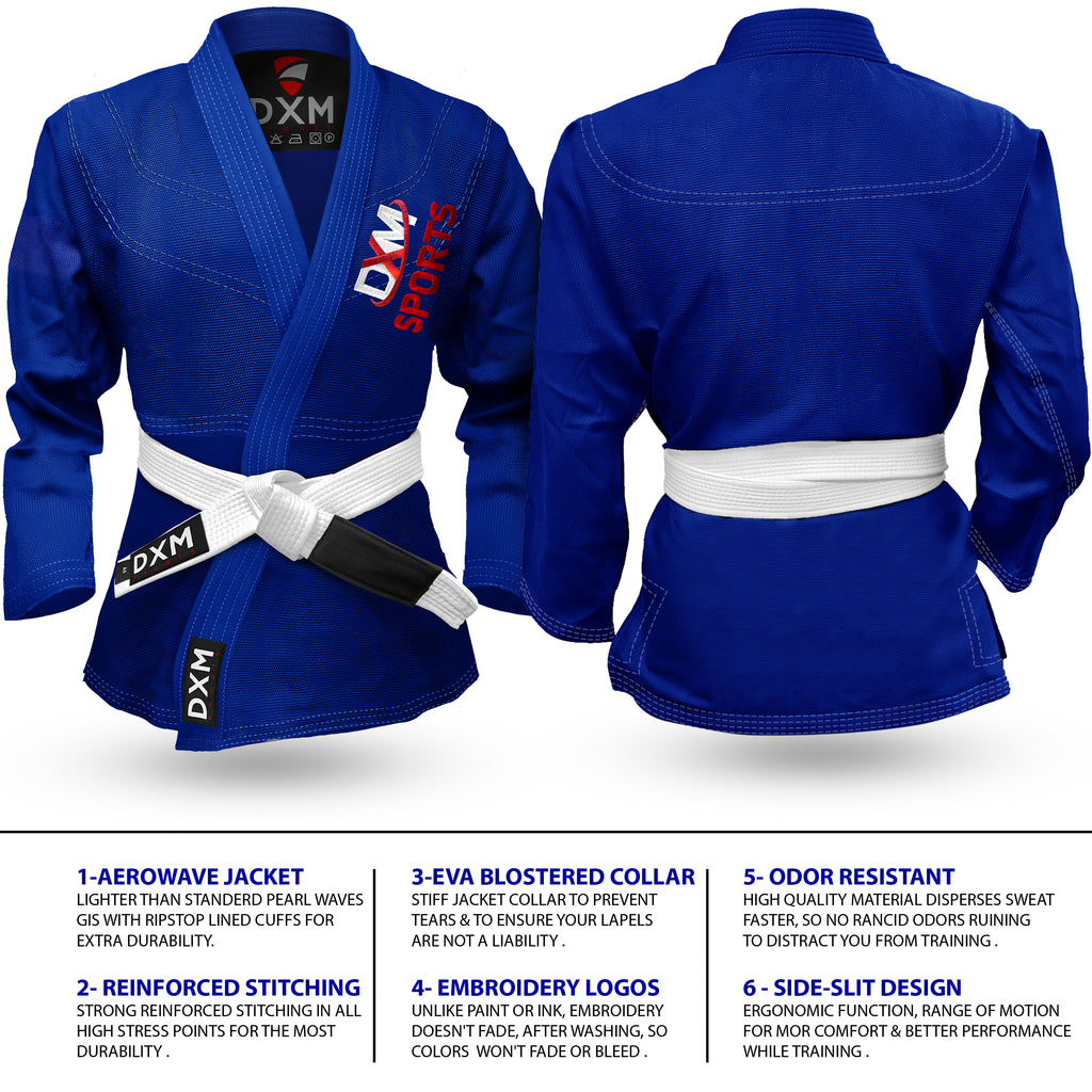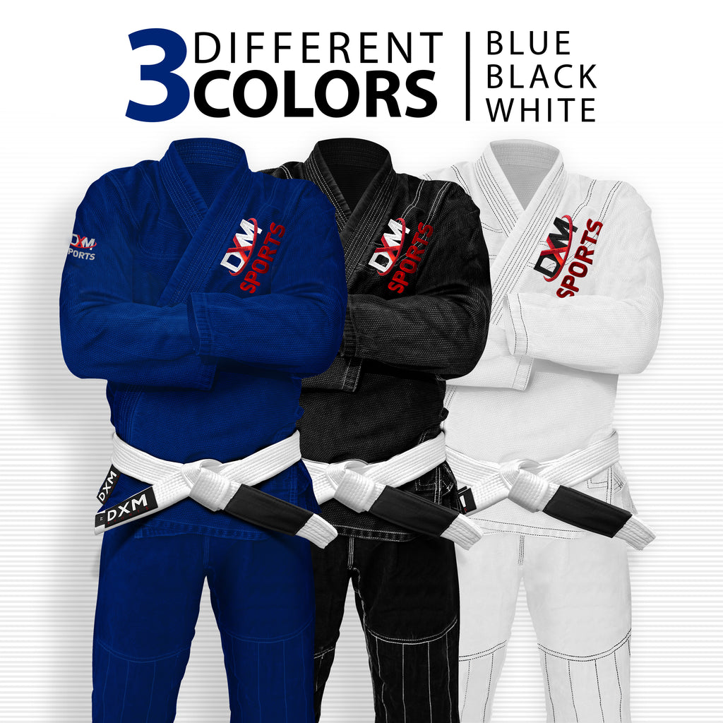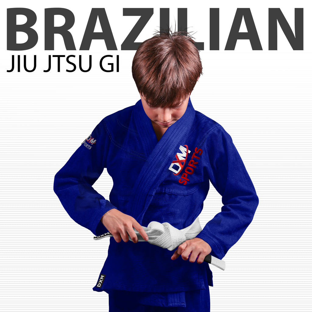 DXM SPORTS Brazilian Jiu Jitsu Kimono MMA Grappling Suit for Kids. Preshrunk Pearl Weave BJJ training uniform for Boys and Girls with Triple Seams Stitching + FREE Belt. Excellent craftsmanship will give you amazing BJJ training experience like pros, With DXM SPORTS logos with triple contrast stitching this GI will stand out in any gym/academy.