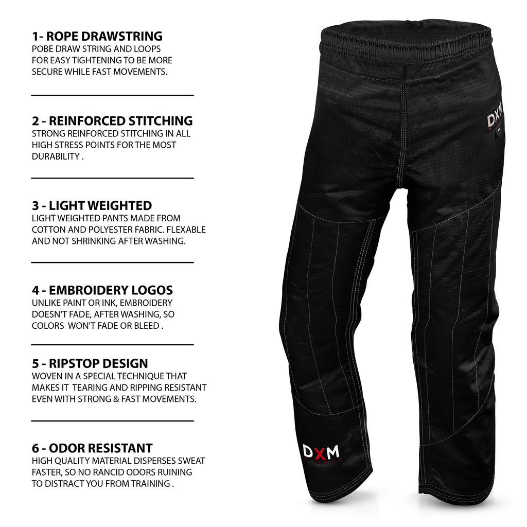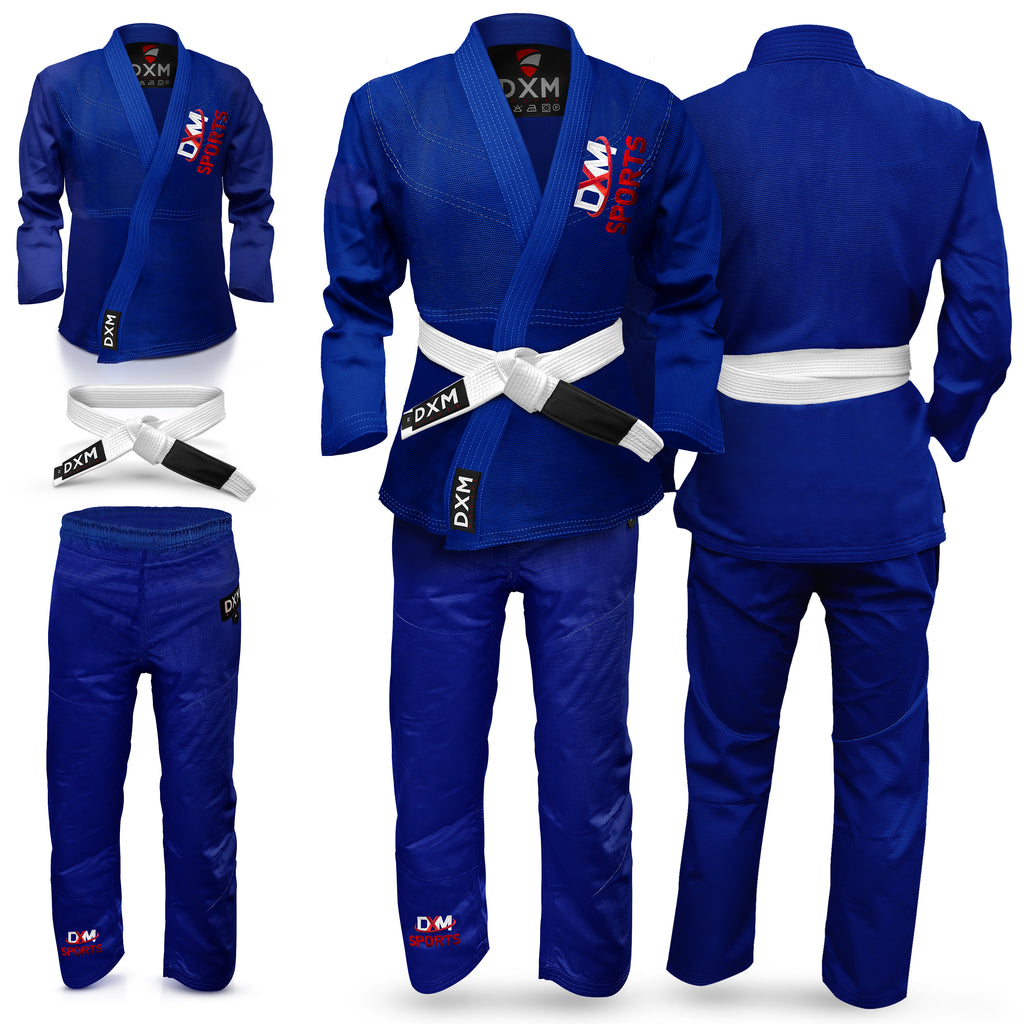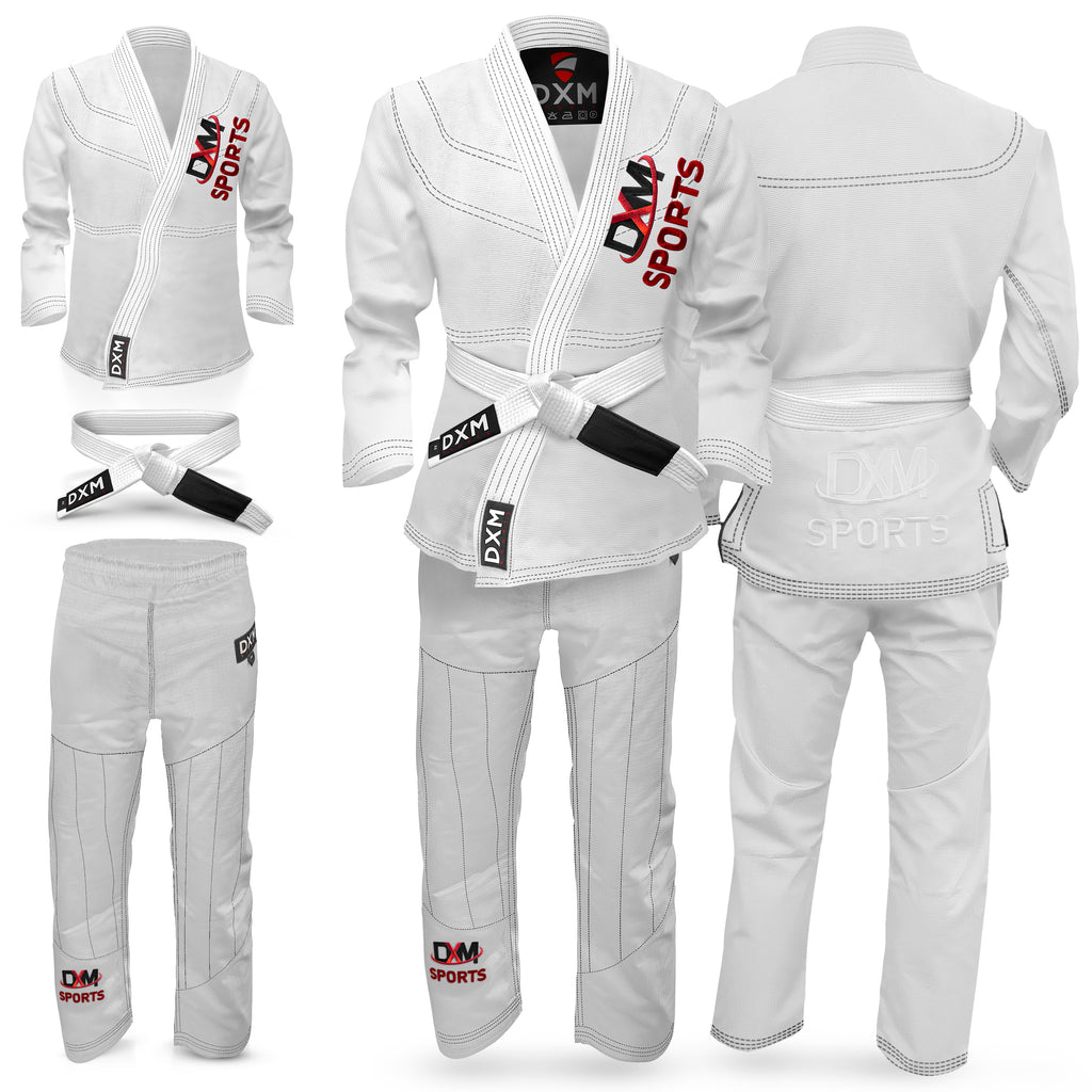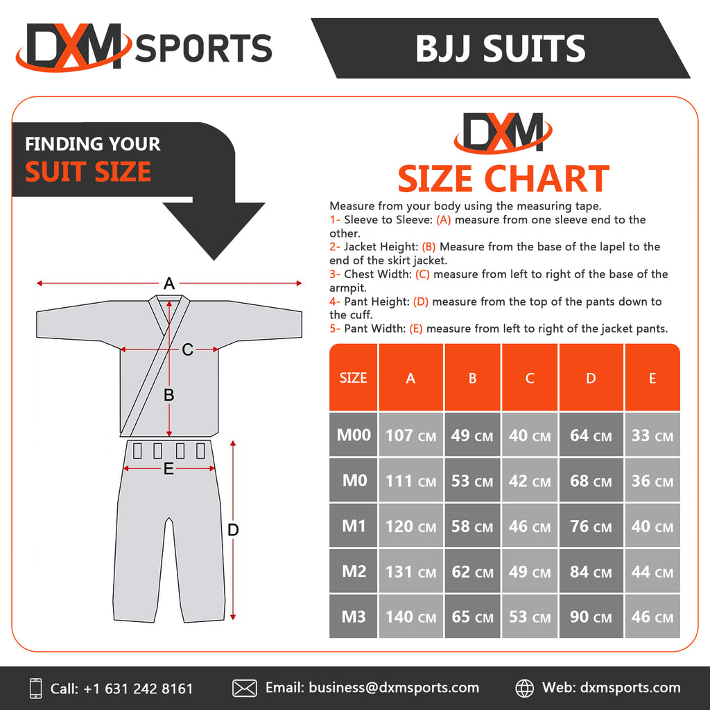 DXM SPORTS BJJ Suits are durable provides long lasting functionality to BJJ enthusiasts and professional athletes and can put through the toughest training sessions so you can trust in their durability. Our Top and Bottom Set provides mobility throughout training and combat and can be easily folded for storage or transportation. We strive to provide the best end product from using 350 GSM cotton material with hand making every unit special.