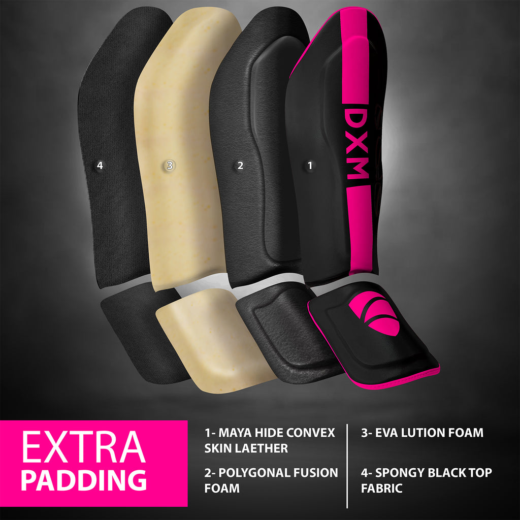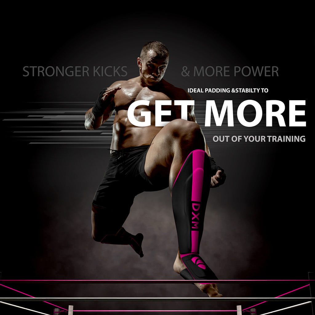 DXM Sports Espinilleras de Empeine Negras/Rosas para Artes Marciales MMA Equipo de Entrenamiento de Patadas y Sparring, BJJ Karate Boxeo Taekwondo