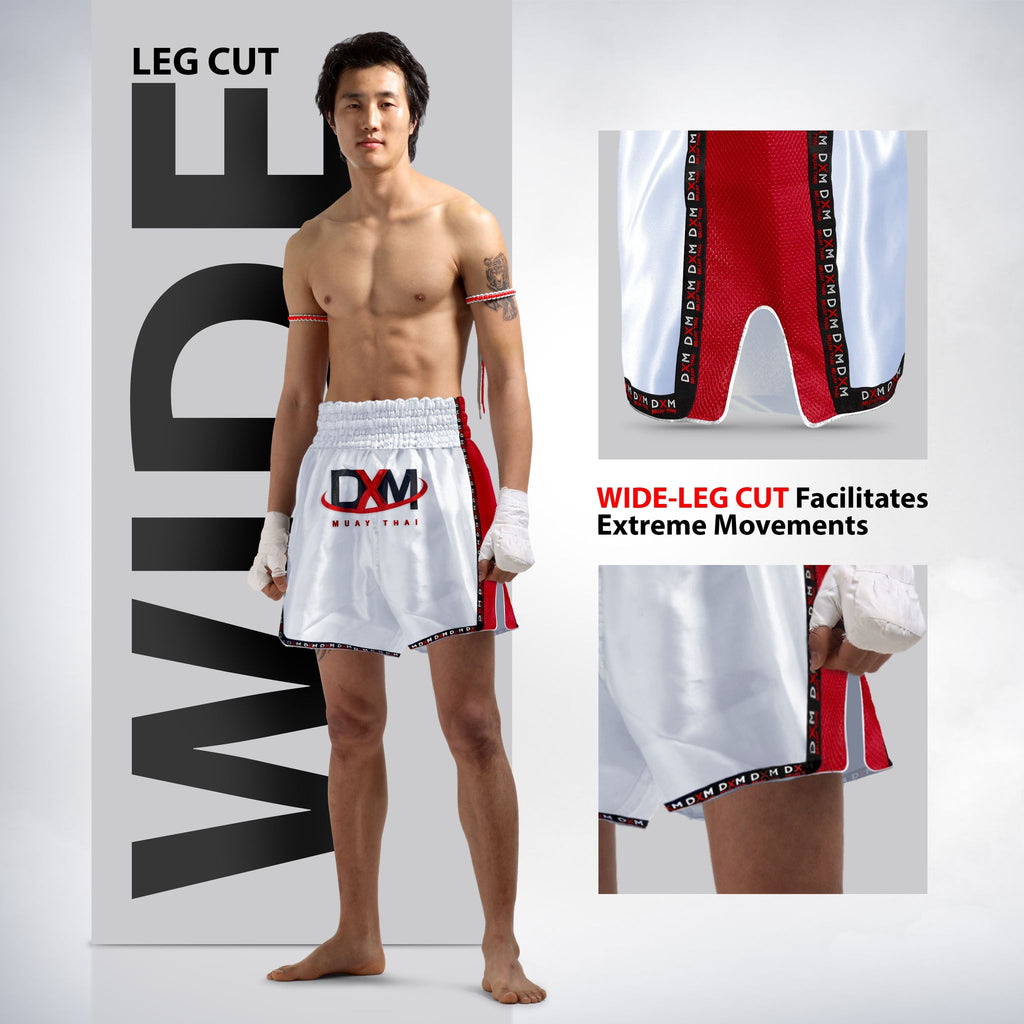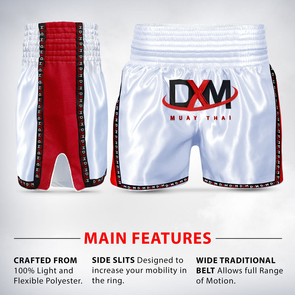 - 1 pieza de pantalón corto DXM Muay Thai - Blanco/Rojo