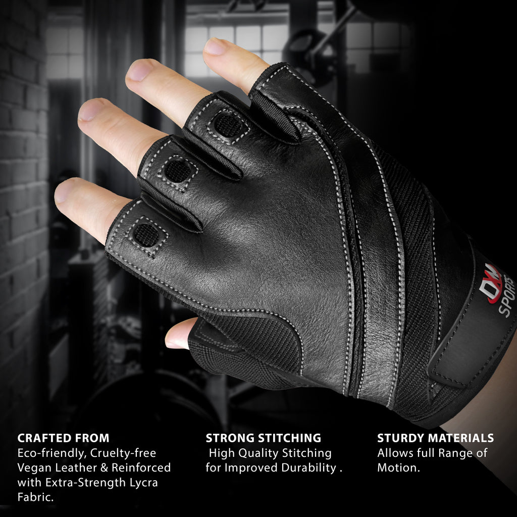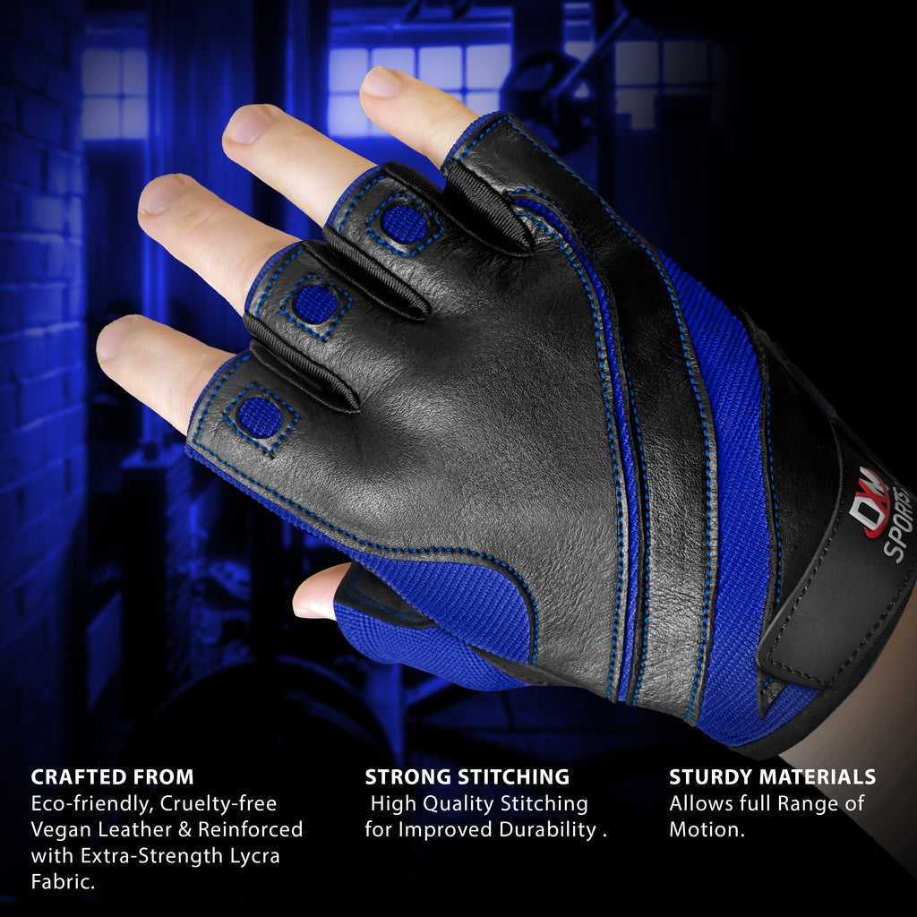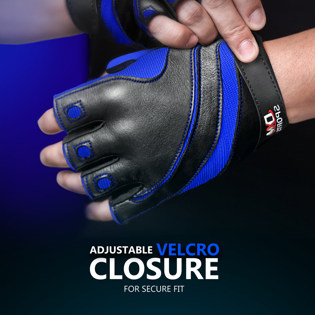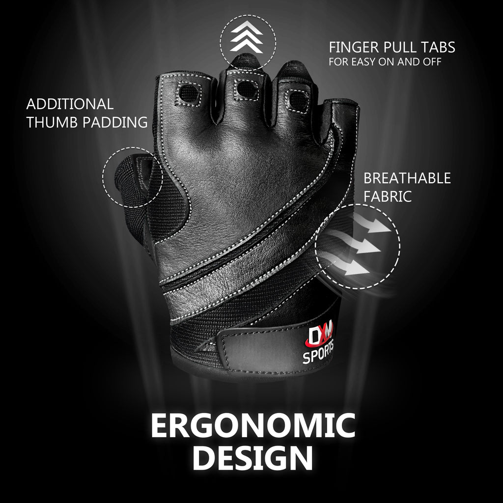 DXM SPORTS Workout Gloves for Men, Half Finger Gym Weight Lifting Gloves with Build in Wrist Support - Breathable, Anti-Slip Leather Gloves for Heavy Liftings, Exercise, Fitness, Cycling, Training, Outdoor Sports.