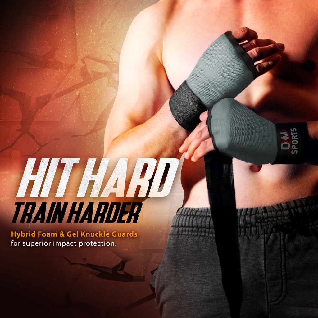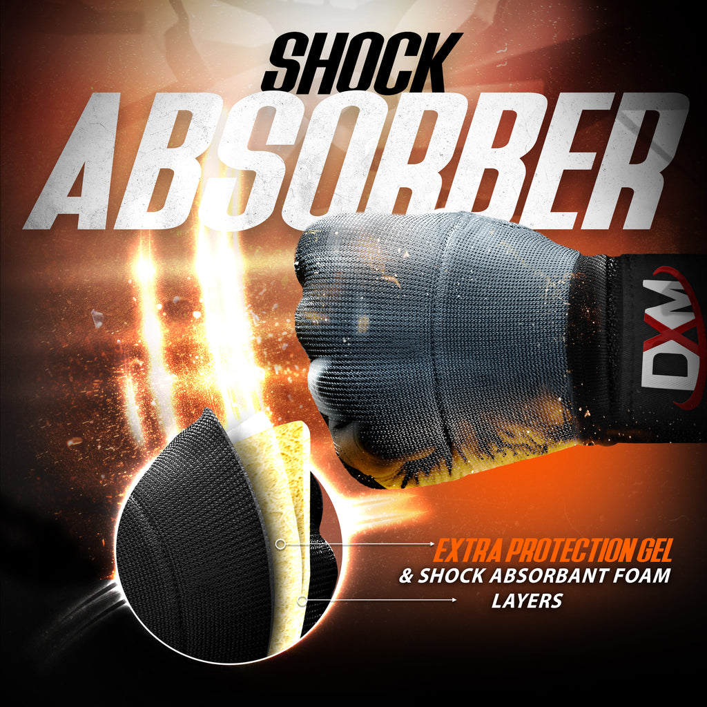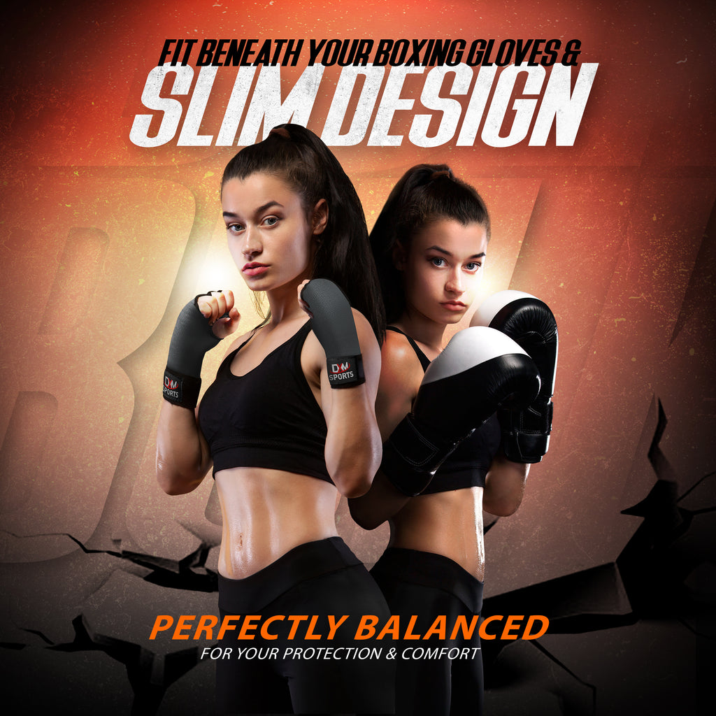 Unleash your inner champion with DXM Sports. With superior impact distribution, DXM SPORTS gel padded inner gloves with hook & loop wrist wrap strap for knuckle protection is ideal for diffusing the brunt of the force received while training or competing in MMA, Boxing, Muay Thai, and Kickboxing, among other sports, across the structure of the boxing inner gloves. These gel padded inner gloves have approx 70cm long hook-and-loop closure Lycra straps to custom wrap your wrists. The straps grip the wrists properly and provide wraparound support for pressure management while punching. Our hand wraps inner gloves are your perfect companion whether you are in training or want an extra edge in the ring during competition. Get yours and make your punch count!